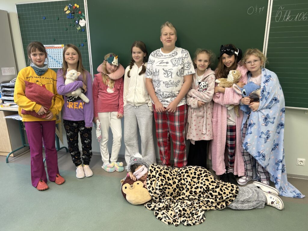 Esmaspäeval alustasime nädalat pidžaamapäevaga – koolimaja oli täis uniseid, kuid rõõmsaid õpilasi, kes saabusid tundidesse mugavates pidžaamades, hommikumantlites ja kaisukatega.